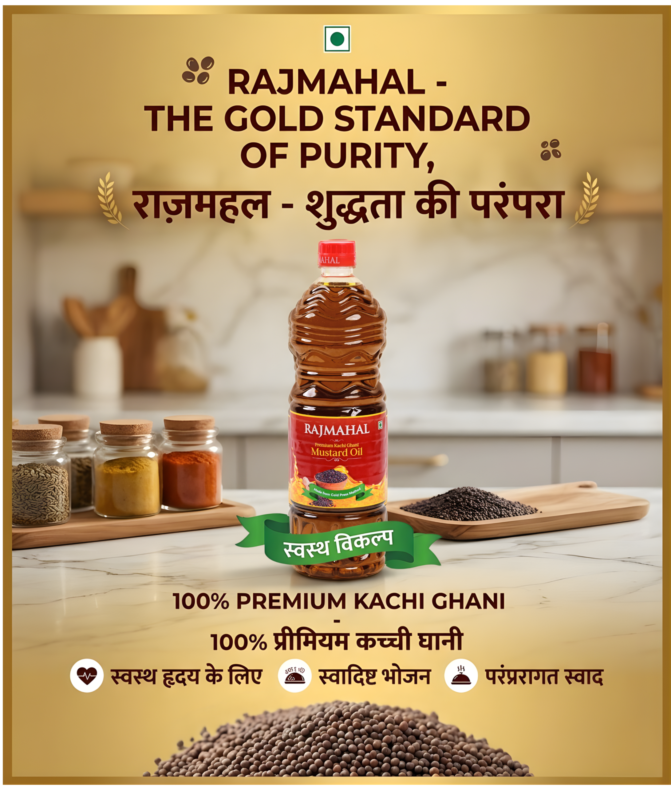 At Rajmahal, we believe great health begins with pure ingredients. Our mustard oil is crafted using traditional Kacchi Ghani methods, ensuring every drop delivers authentic taste, natural nutrition, and uncompromised quality.